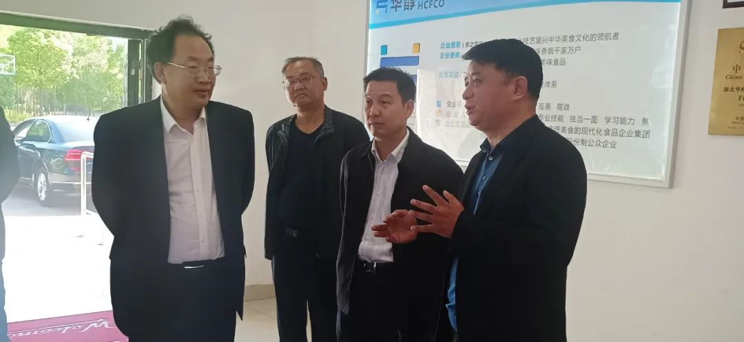 5月10日 湖北省糧油集團有限責任公司副總經理杜佐勝,荊門市人大常委會主任汪在祥,市人大農委主任委員羅小文,市農業(yè)農村局副局長程勇一行,蒞臨華醇食品參觀指導工作。